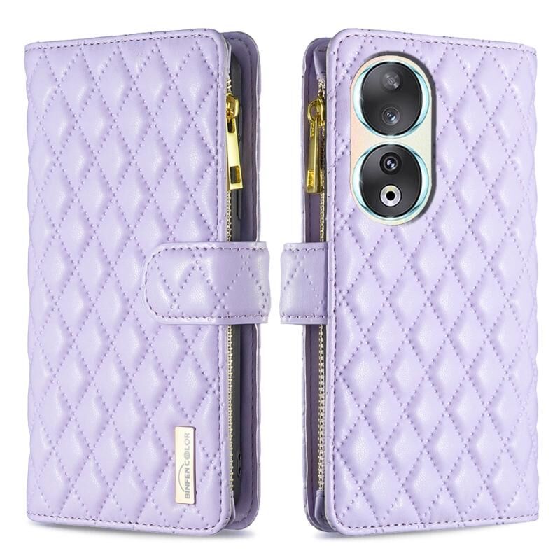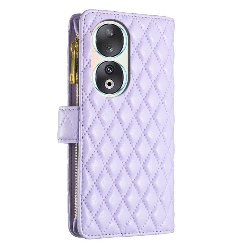 For Honor 90 5G Diamond Lattice Zipper Wallet Leather Flip Phone Case(Purple)