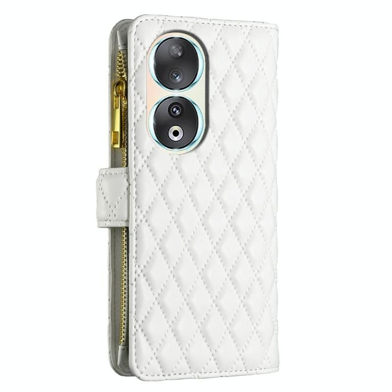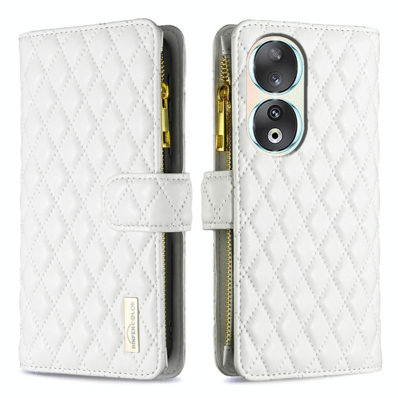 For Honor 90 5G Diamond Lattice Zipper Wallet Leather Flip Phone Case(White)