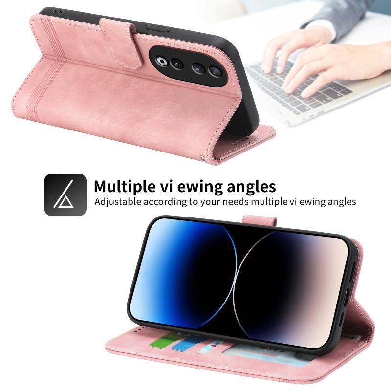 Θήκη κινητού τηλεφώνου Dierfeng Dream Line TPU Hybrid PU Leather για Honor 90 5G (ρόζ)
