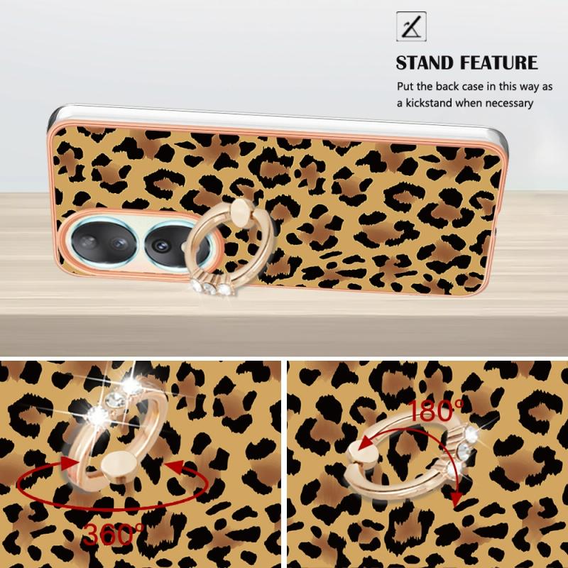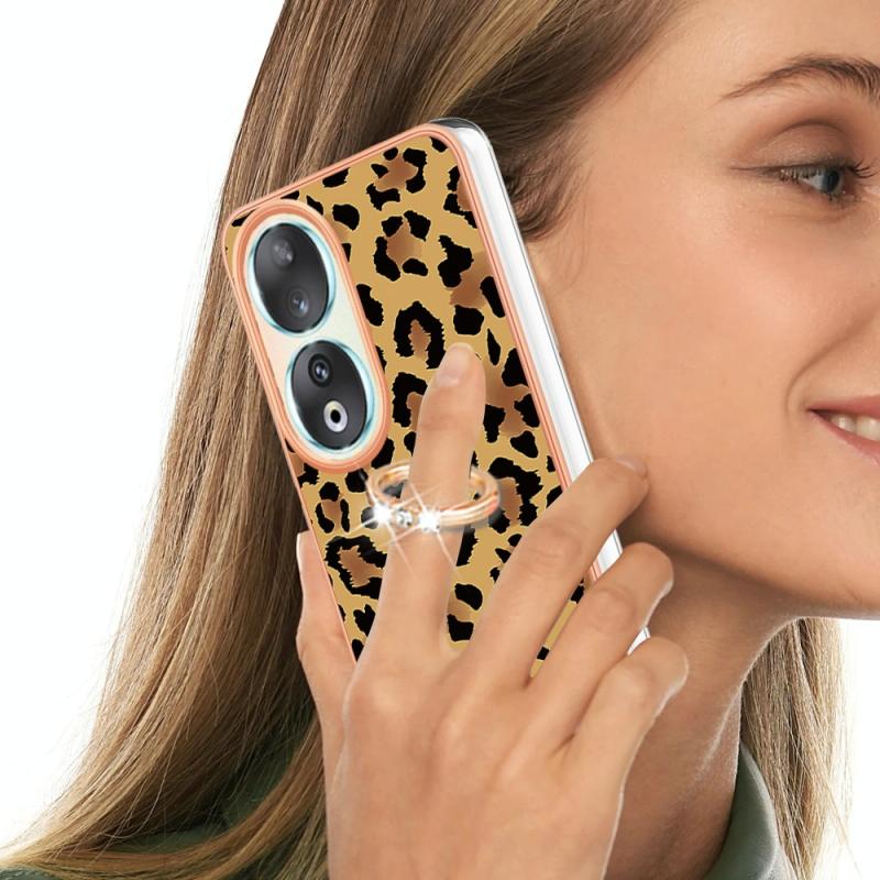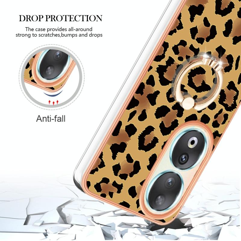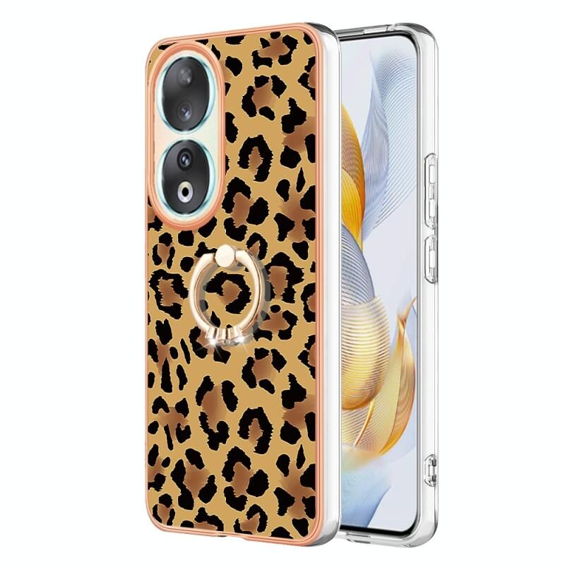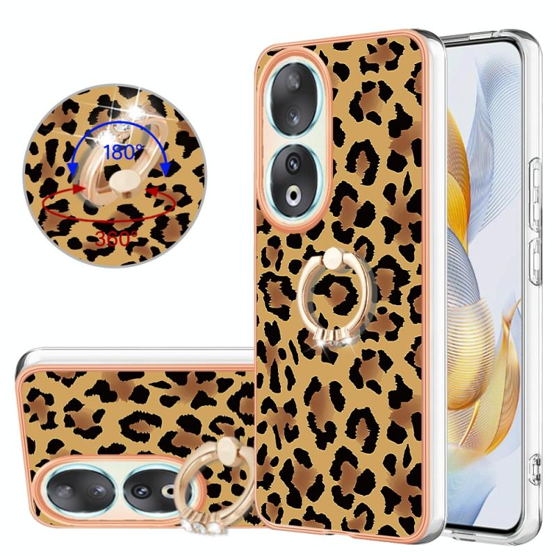For Honor 90 5G Electroplating Dual-side IMD Phone Case with Ring Holder(Leopard Print)