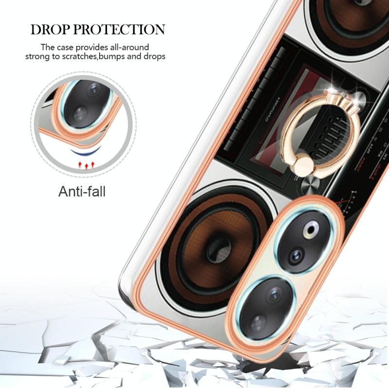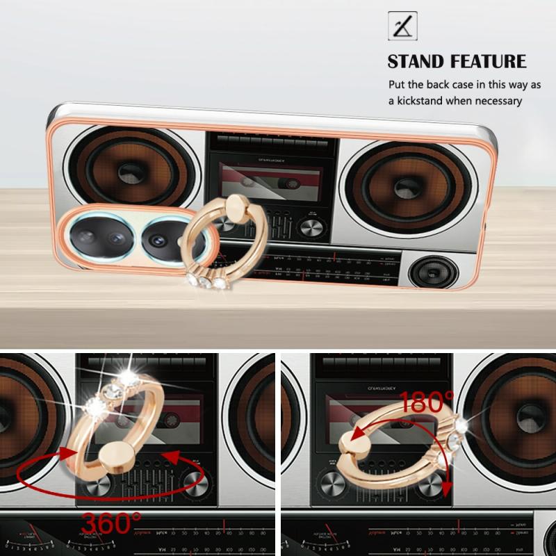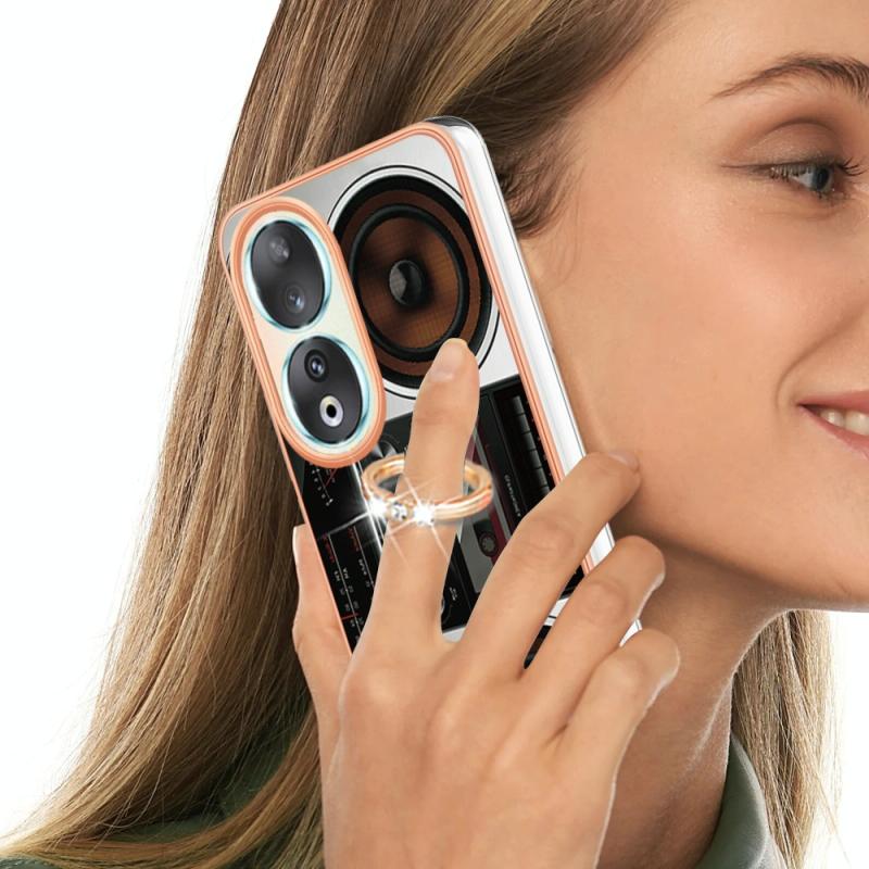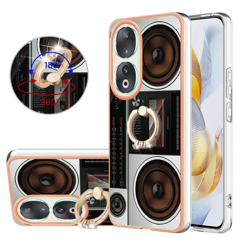For Honor 90 5G Electroplating Dual-side IMD Phone Case with Ring Holder(Retro Radio)