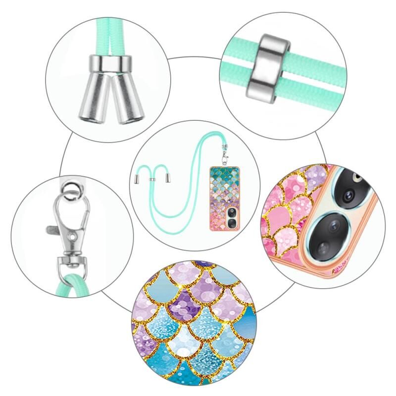 Θήκη τηλεφώνου για Honor 90 5G με επιμετάλλωση IMD TPU με κορδόνι (Πολύχρωμες Λέπια)