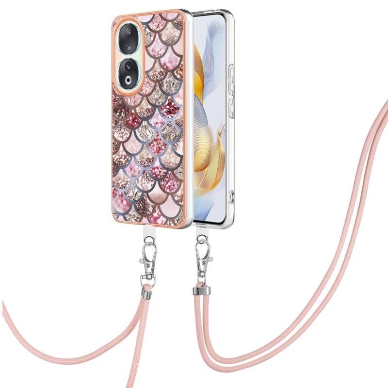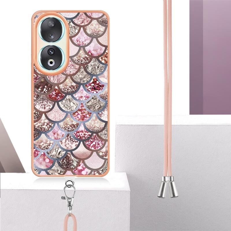 Θήκη τηλεφώνου για Honor 90 5G με επιμετάλλωση IMD TPU με κορδόνι (Ροζ Λέπια)