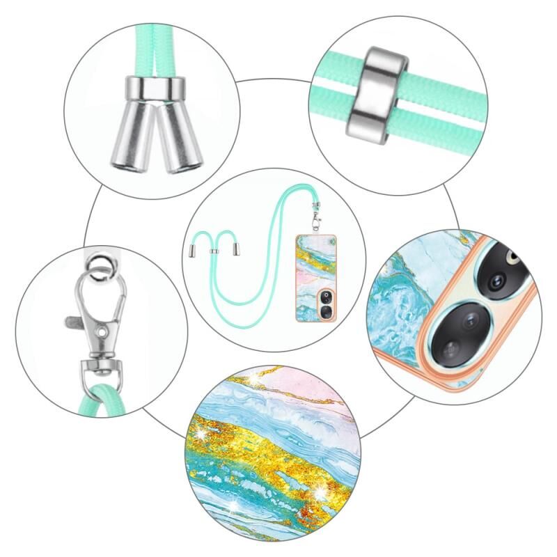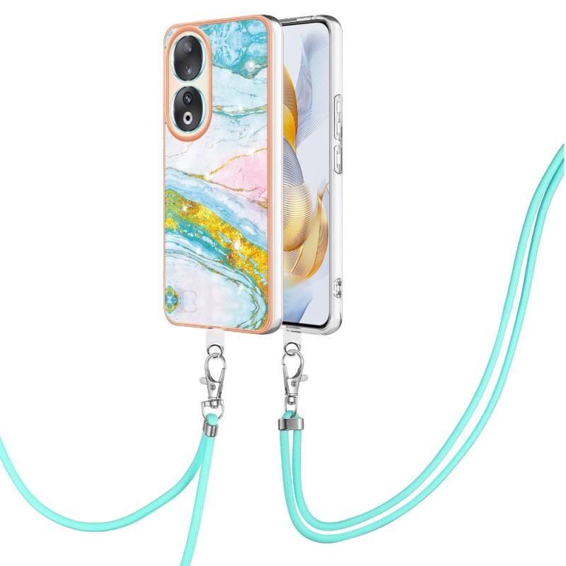 Θήκη τηλεφώνου με κορδόνι για Honor 90 5G, με ηλεκτρολυτική μαρμάρινη επένδυση IMD διπλής όψης (Μωβ 001)