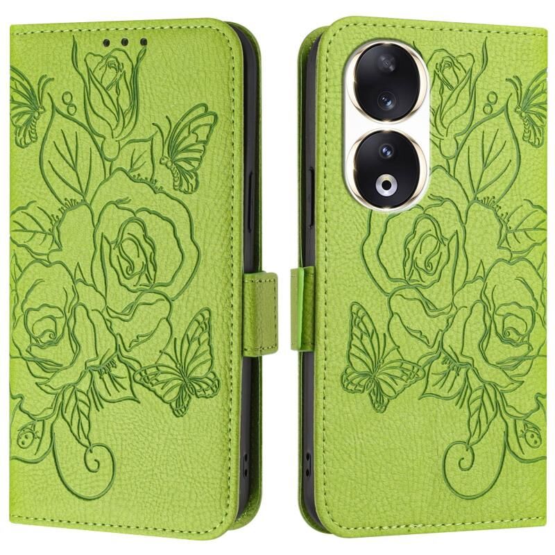 For Honor 90 5G Embossed Rose RFID Anti-theft Leather Phone Case(Green)