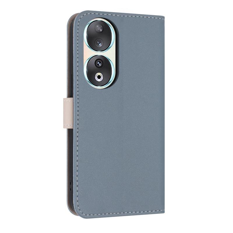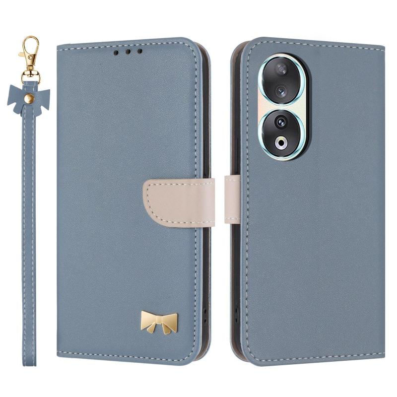 For Honor 90 5G Metal Bow Leather Phone Case with Hand Strap(Light Blue)