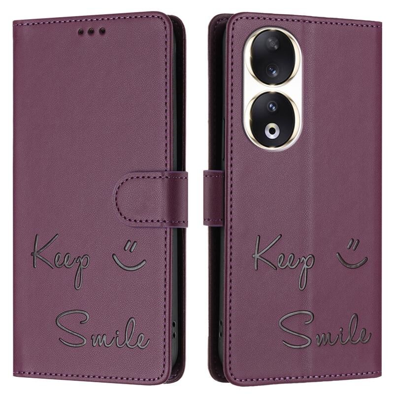 Θήκη τηλεφώνου δερμάτινη με ανάγλυφο χαμόγελο και RFID για Honor 90 5G (Μωβ)