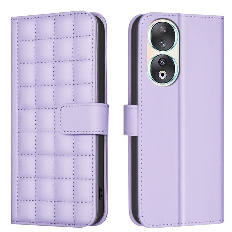 Θήκη τηλεφώνου από δέρμα με τετράγωνη υφή για Honor 90 5G (Μωβ)