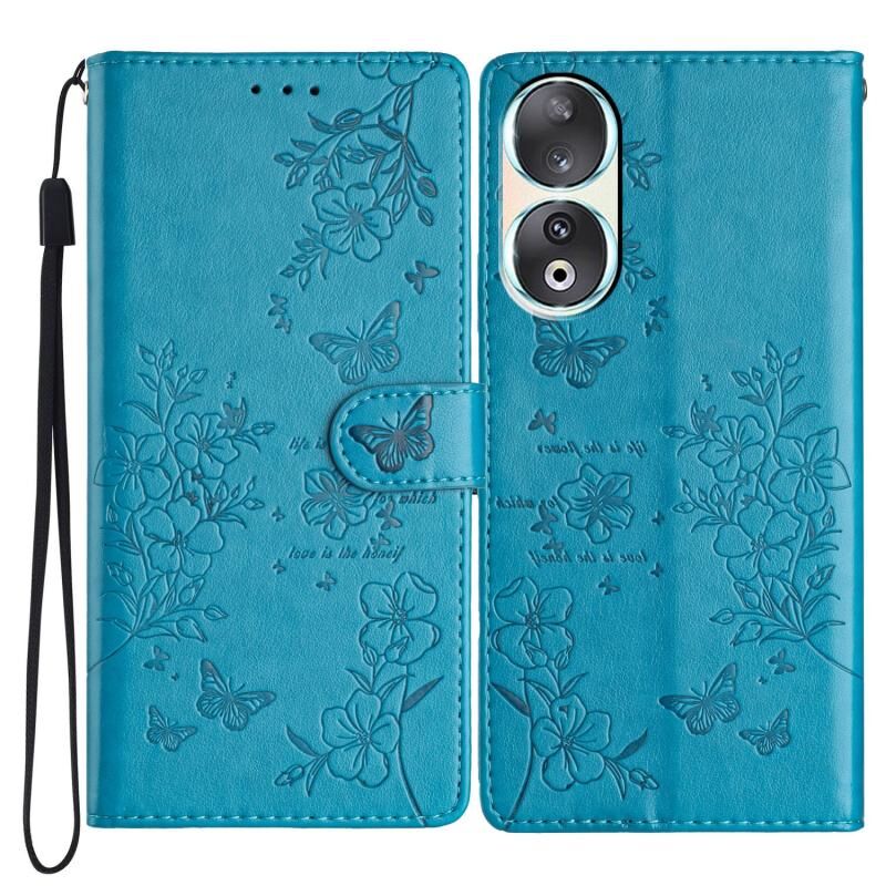 Θήκη τηλεφώνου δερμάτινη για Honor 90, με σχέδια πεταλούδες και λουλούδια (Χρυσό)