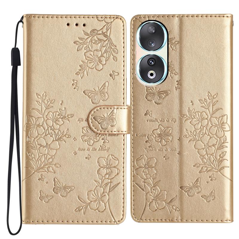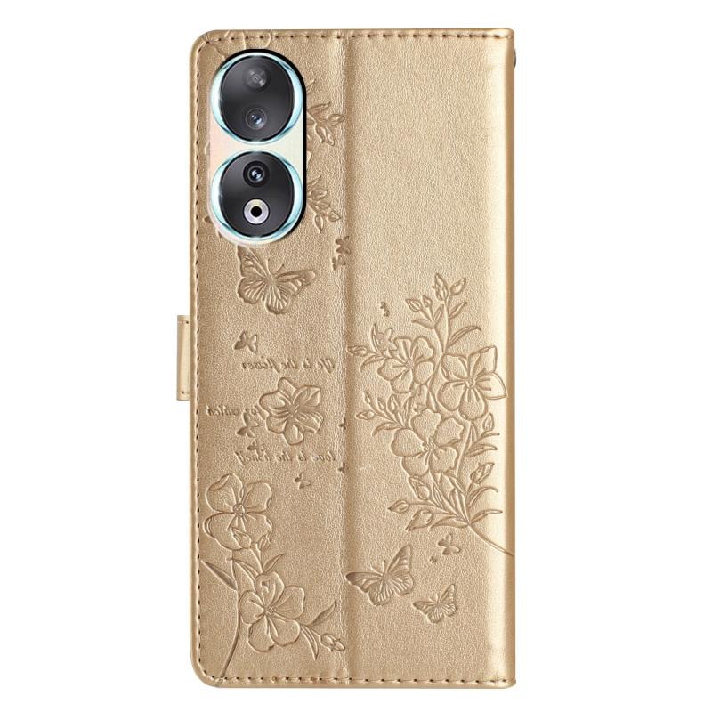 For Honor 90 Butterflies And Flowers Leather Phone Case(Gold)