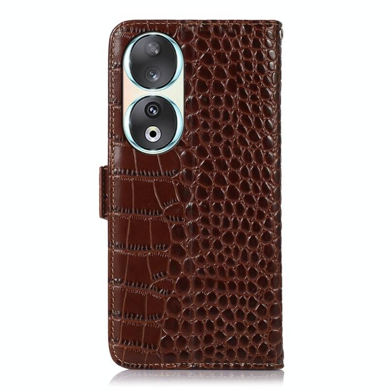 Θήκη τηλεφώνου Honor 90 Crocodile Top Layer από γνήσιο δέρμα αγελάδας (Μαύρο)