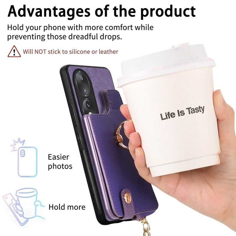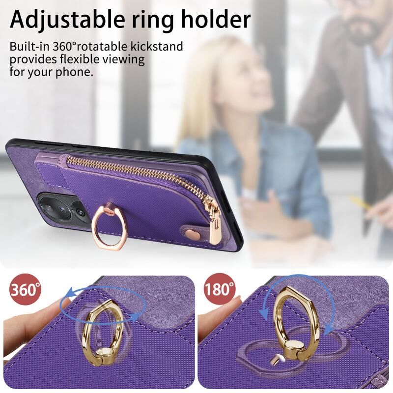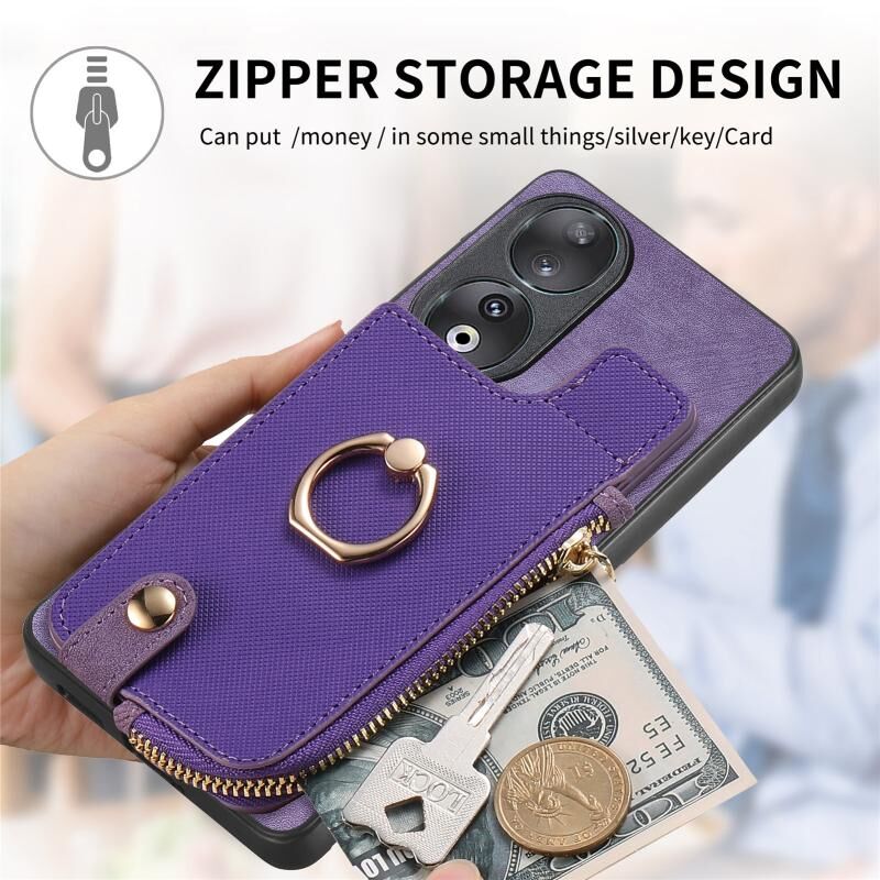 Για Honor 90 Cross Δερμάτινο δαχτυλίδι κάθετη φερμουάρ πορτοφόλι πίσω υπόθεση τηλεφώνου (μωβ)