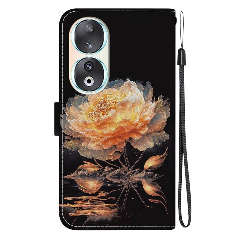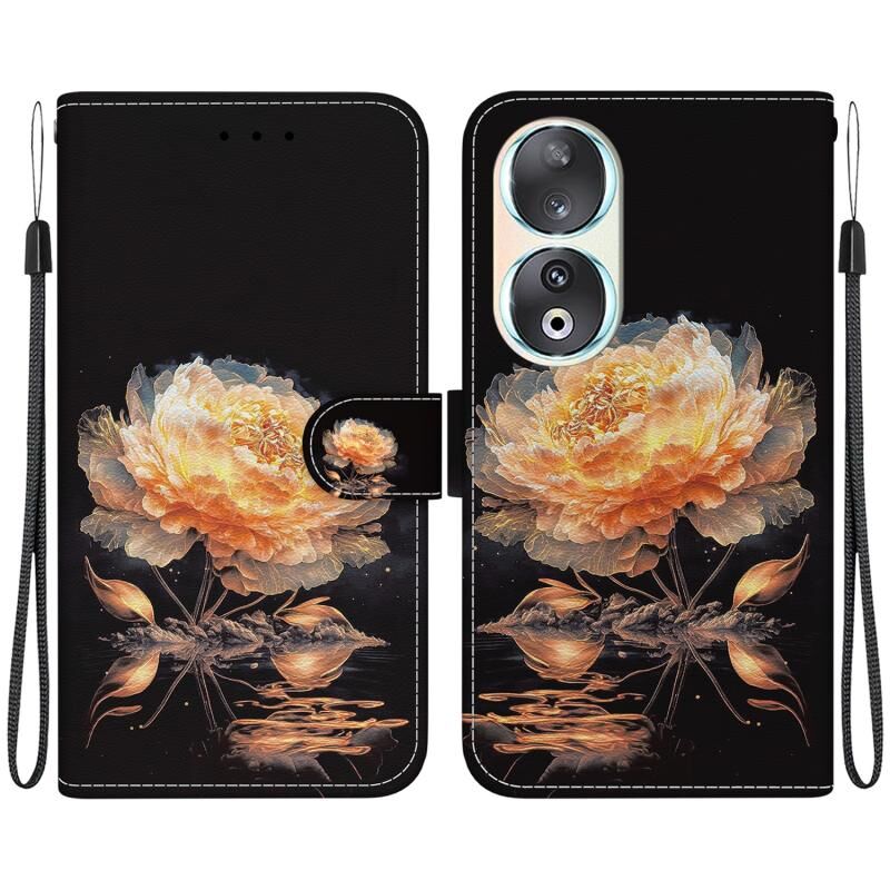 Θήκη τηλεφώνου από δέρμα με πολύχρωμη σχεδίαση κρυστάλλινης υφής για Honor 90 (Μωβ Παιώνια)