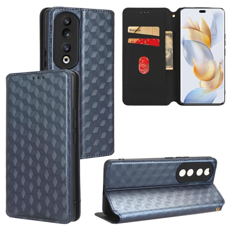 Θήκη τηλεφώνου Honor 90 Cubic Grid Texture Flip από δέρμα (Μαύρο)