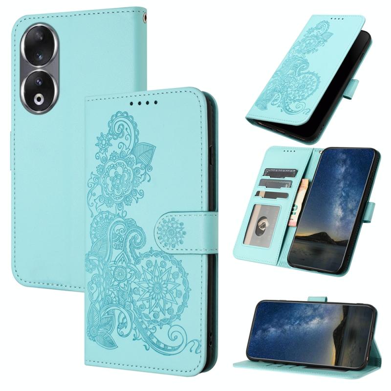For Honor 90 Datura Flower Embossed Flip Leather Phone Case(Light blue)