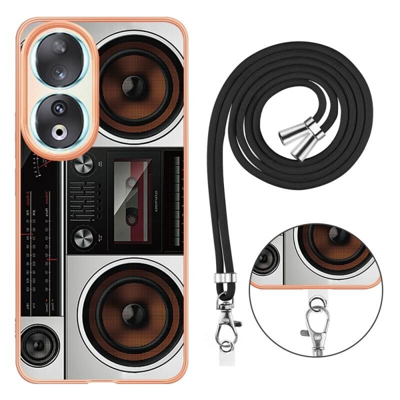 Θήκη τηλεφώνου με κορδόνι για Honor 90, με ηλεκτρολυτική επιμετάλλωση και διπλής όψης IMD (Ρετρό Ραδιόφωνο)