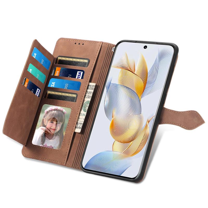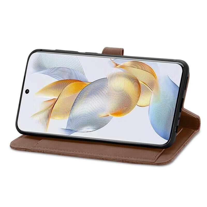 Θήκη Honor 90 Δερμάτινη με Ανάγλυφο Λουλούδι και Φερμουάρ (Καφέ)