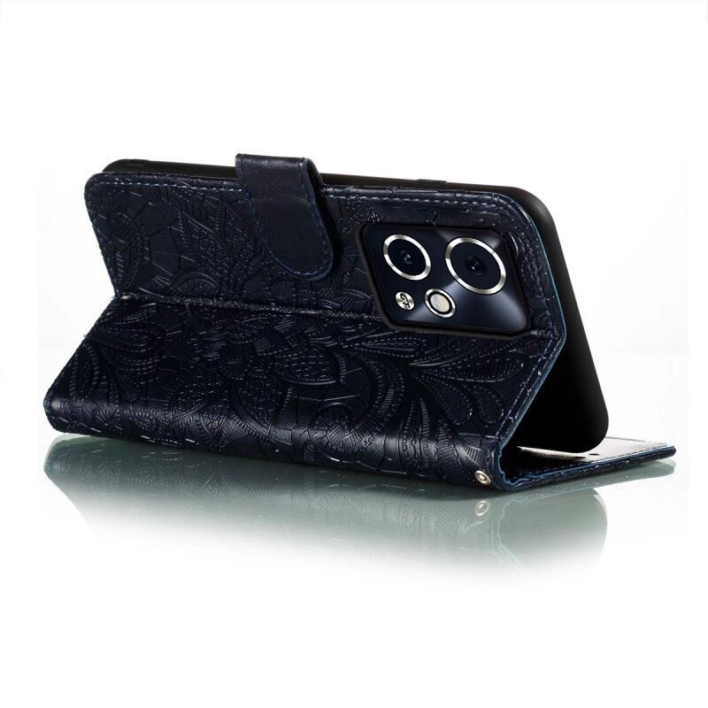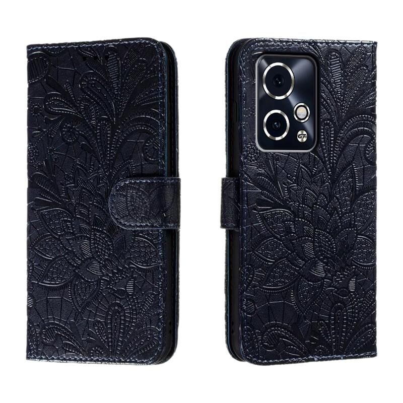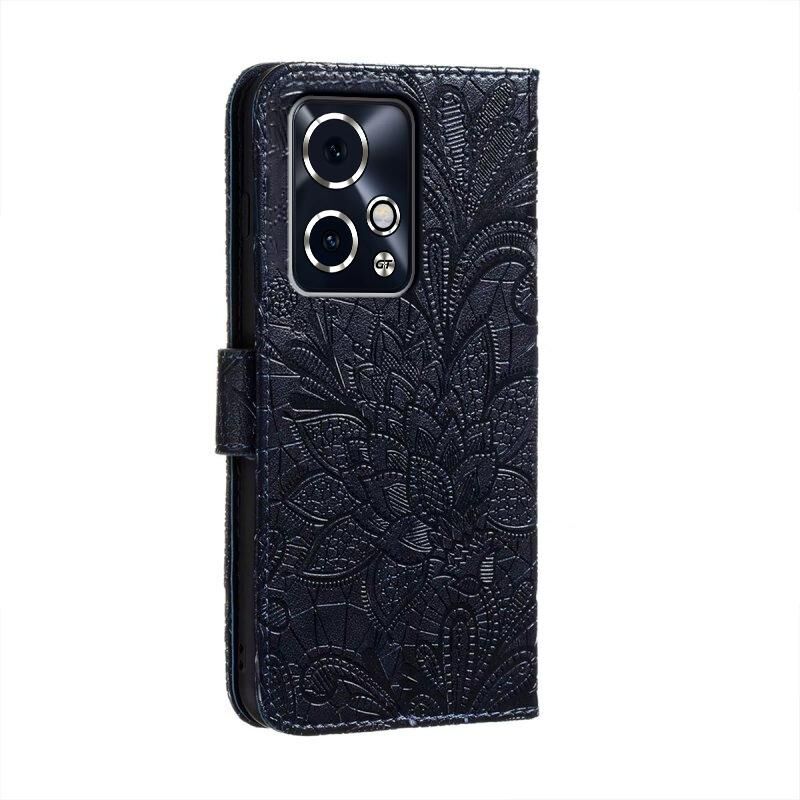 Για Honor 90 GT Lace λουλούδι ανάγλυφο Flip υπόθεση τηλεφώνου δέρμα (σκούρο μπλε)