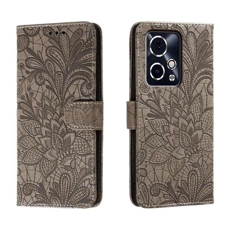 Για Honor 90 GT Δαντέλα λουλούδι ανάγλυφο Flip υπόθεση τηλεφώνου δέρμα (γκρι)