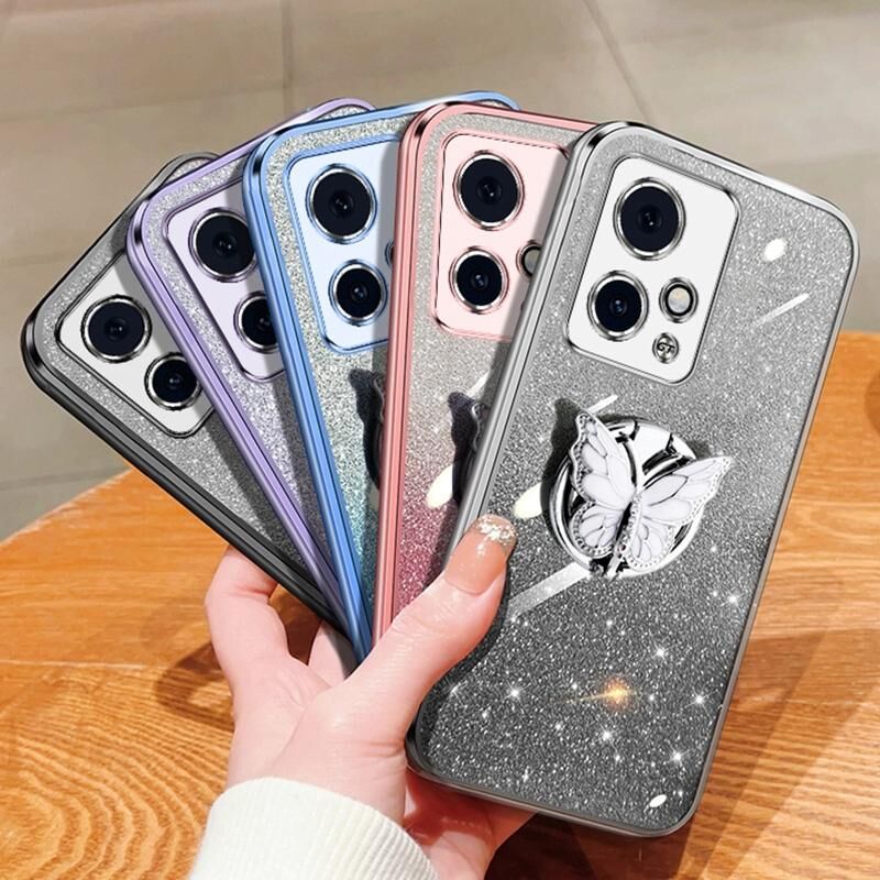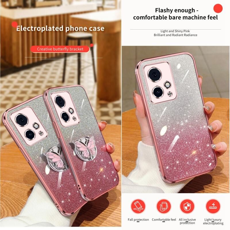 Θήκη κινητού τηλεφώνου TPU με επιμετάλλωση, διαβαθμισμένη λάμψη, πεταλούδα για Honor 90 GT (Ροζ)