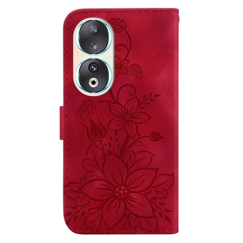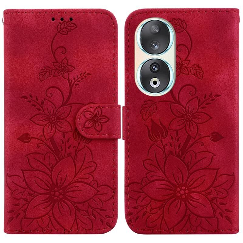 Για Honor 90 Lily ανάγλυφη δερμάτινη θήκη τηλεφώνου (κόκκινο)