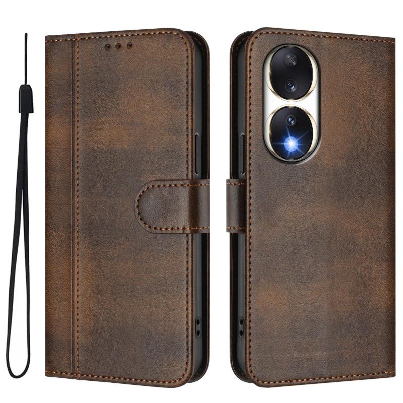 For Honor 90 Line Splicing Buckle Retro Leather Phone Case(Brown)