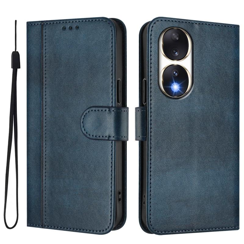 For Honor 90 Line Splicing Buckle Retro Leather Phone Case(Dark Blue)