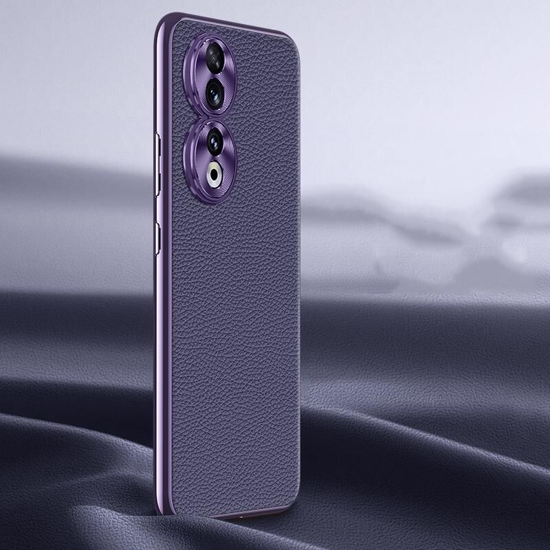 Θήκη τηλεφώνου από γνήσιο δέρμα με υφή Litchi για Honor 90 (Πορτοκαλί)