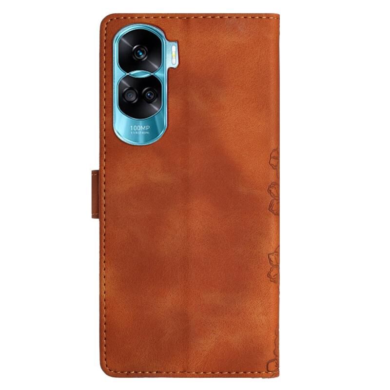 Θήκη τηλεφώνου από PU με ανάγλυφη υφή, Cherry Blossom Butterfly για Honor 90 Lite 5G (Κόκκινο)