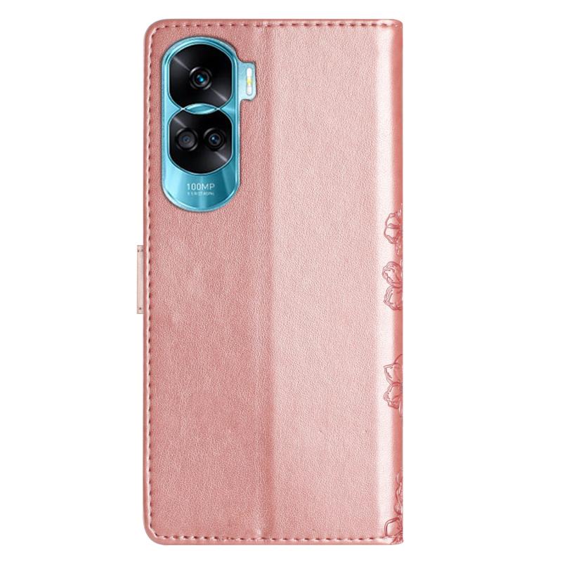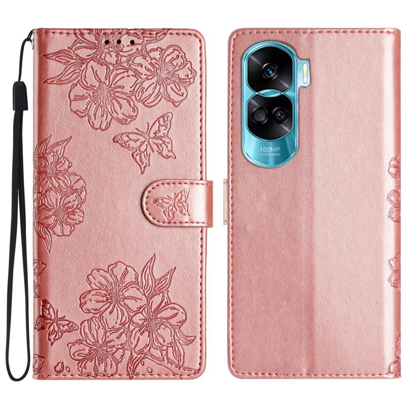 For Honor 90 Lite 5G Cherry Blossom Butterfly Skin Feel Embossed PU Phone Case(Rose Gold)
