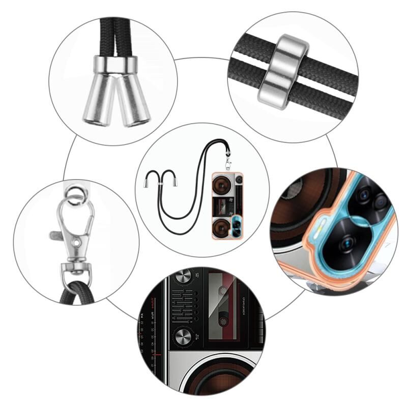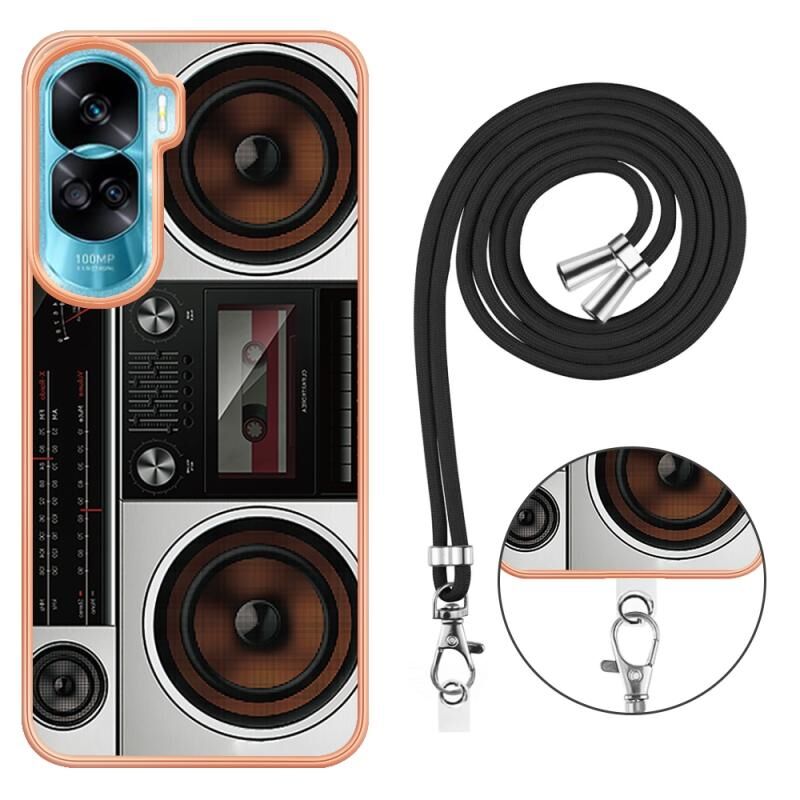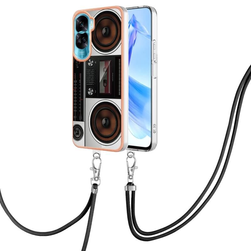 Θήκη τηλεφώνου με κορδόνι για Honor 90 Lite 5G, με ηλεκτρολυτική επιμετάλλωση και διπλής όψης IMD (Ρετρό Ραδιόφωνο)
