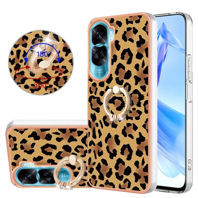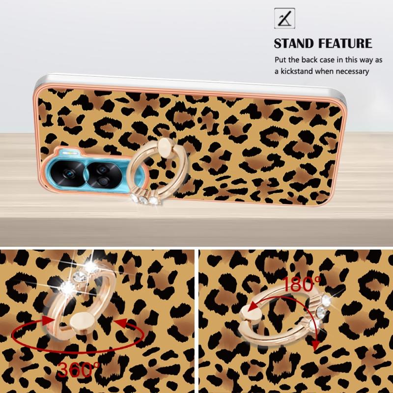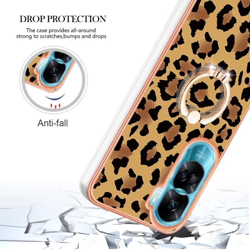 For Honor 90 Lite 5G Electroplating Dual-side IMD Phone Case with Ring Holder(Leopard Print)