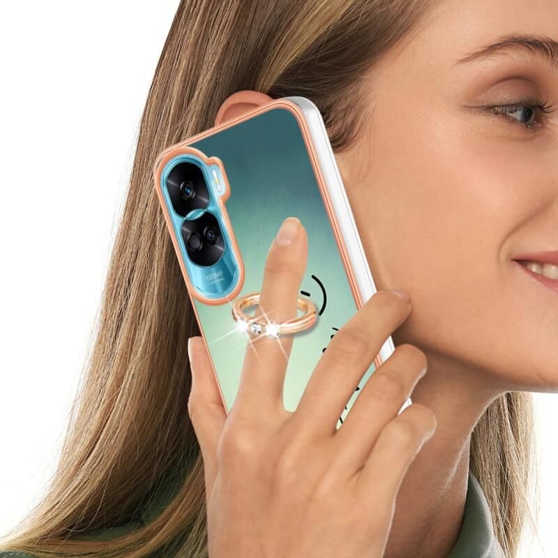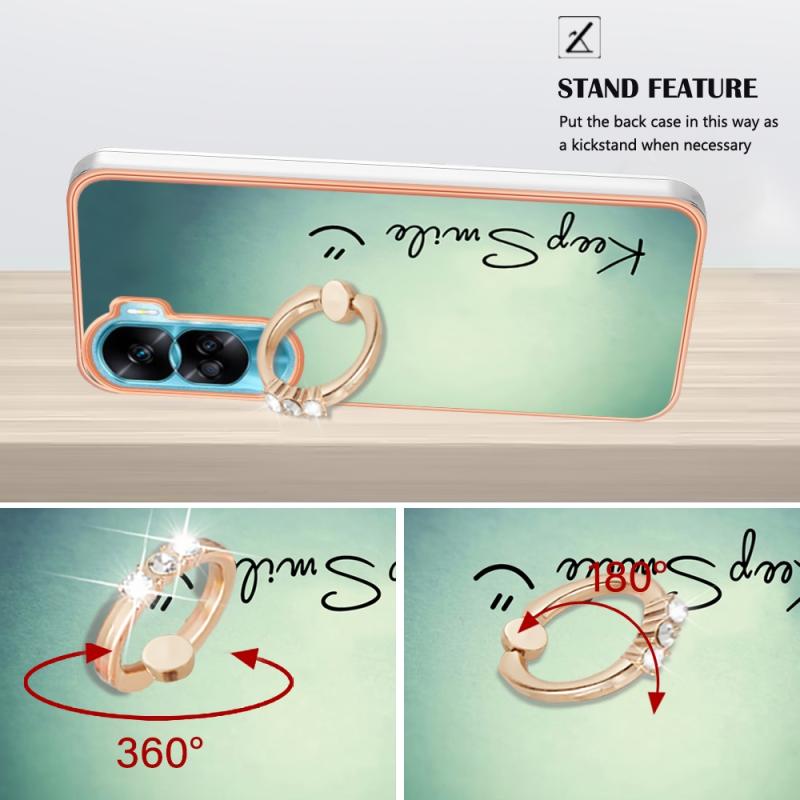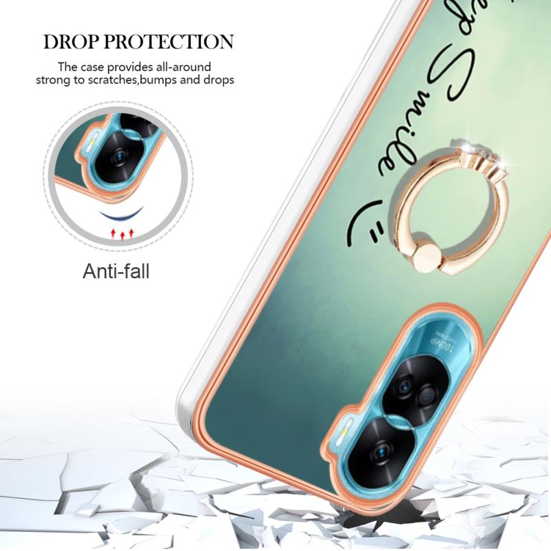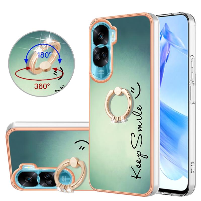 For Honor 90 Lite 5G Electroplating Dual-side IMD Phone Case with Ring Holder(Smile)