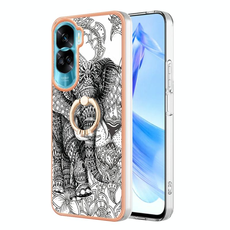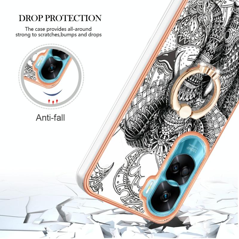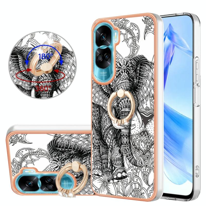 For Honor 90 Lite 5G Electroplating Dual-side IMD Phone Case with Ring Holder(Totem Elephant)
