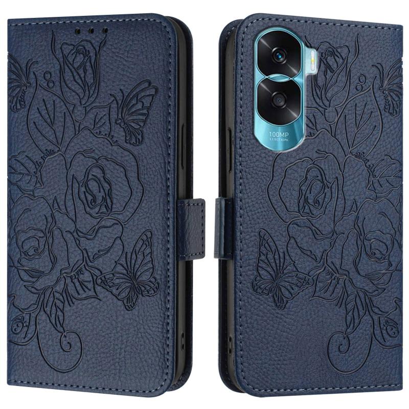 For Honor 90 Lite 5G / X50i 5G Embossed Rose RFID Anti-theft Leather Phone Case(Dark Blue)