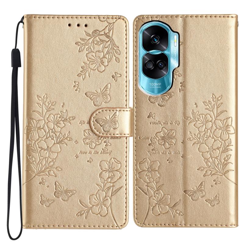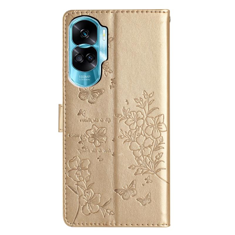 For Honor 90 Lite Butterflies And Flowers Leather Phone Case(Gold)