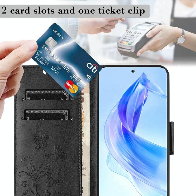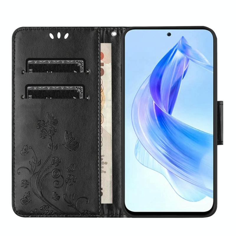 Θήκη Honor 90 Lite με σχέδιο πεταλούδας και λουλουδιών, δερμάτινη (Μαύρο)