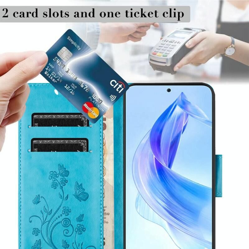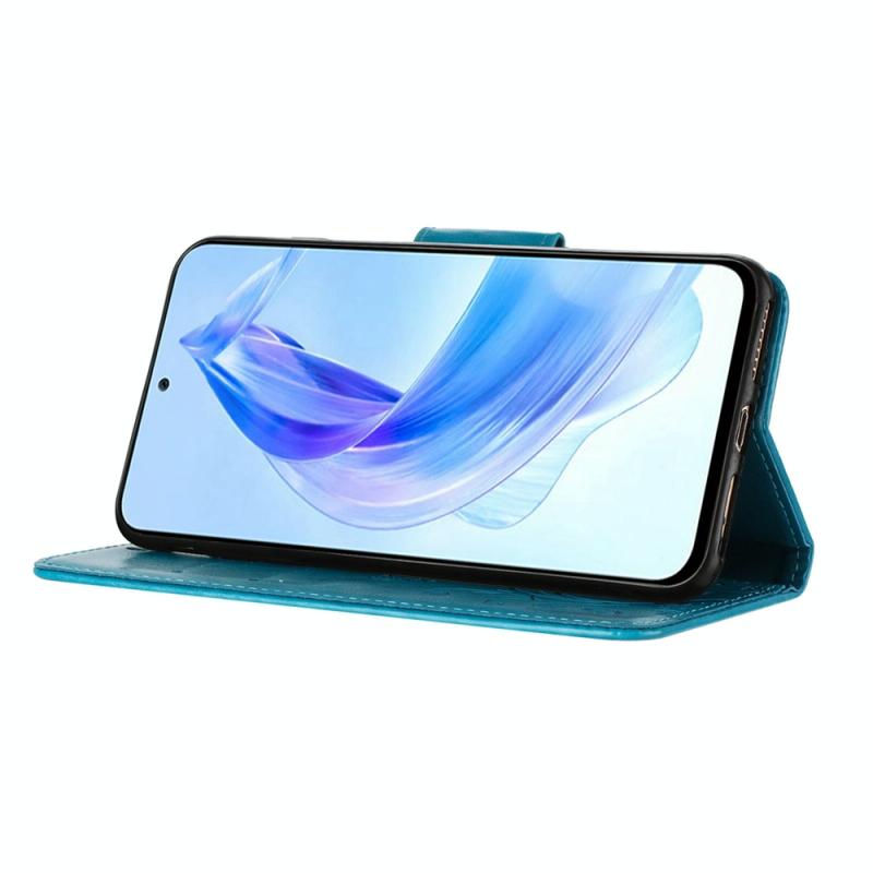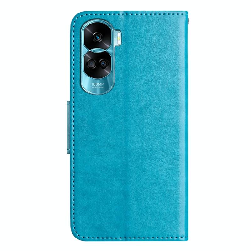 Θήκη Honor 90 Lite με σχέδιο πεταλούδας και λουλουδιών, δερμάτινη (Μπλε)