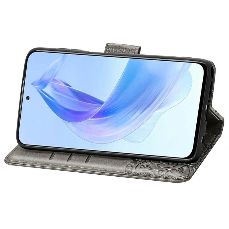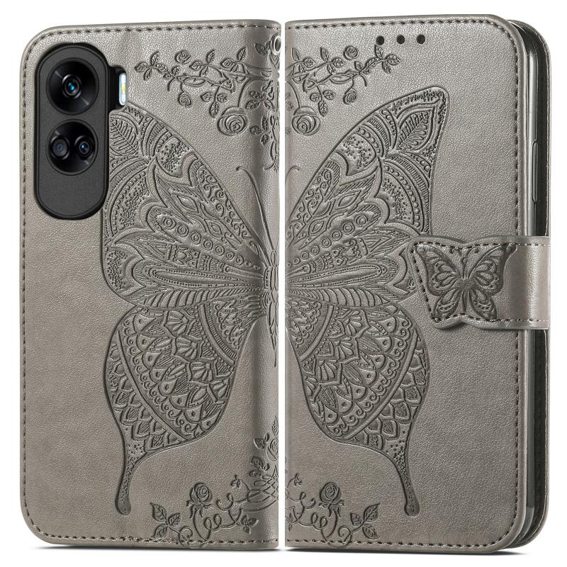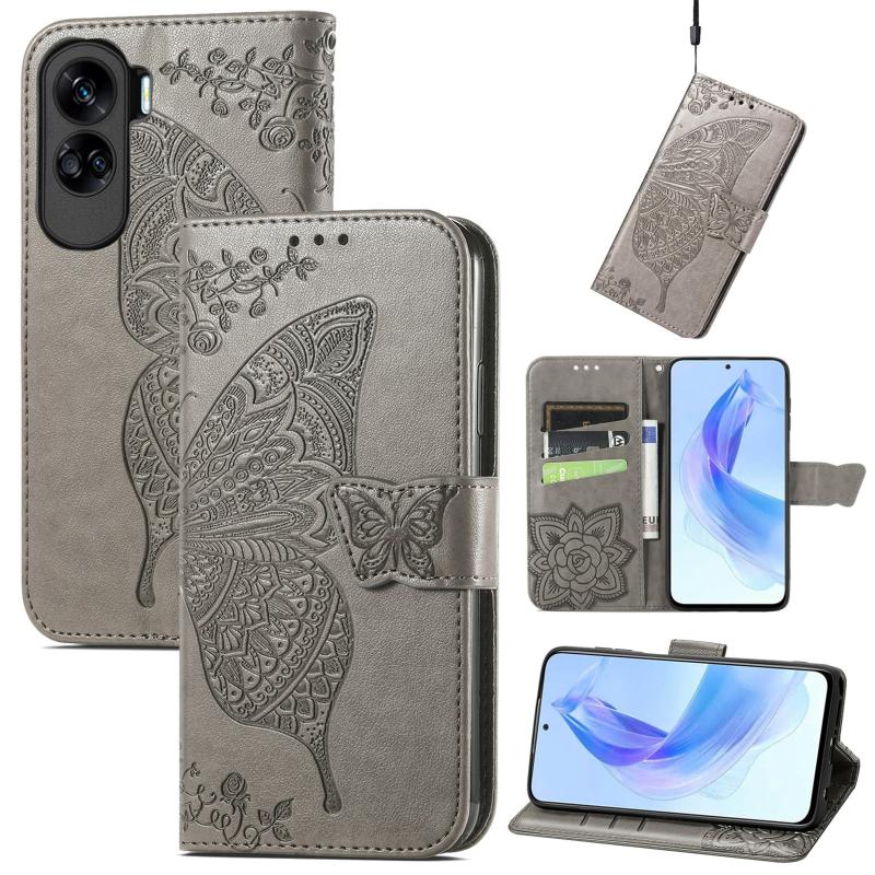 For Honor 90 Lite Butterfly Love Flower Embossed Leather Phone Case(Gray)