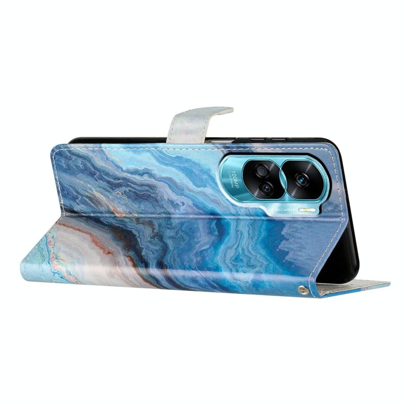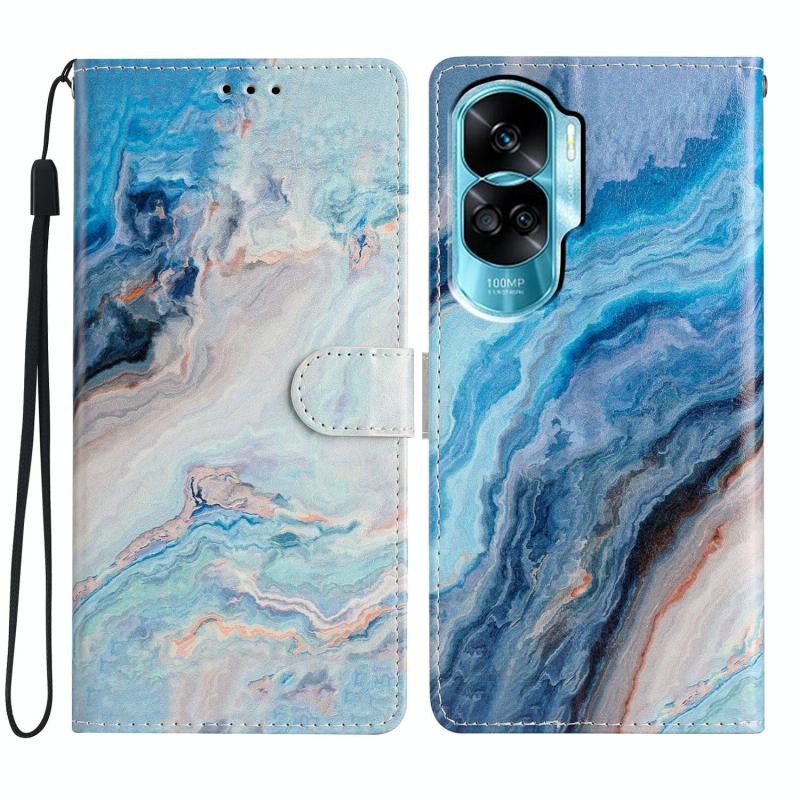 Θήκη τηλεφώνου από δέρμα με έγχρωμο σχέδιο για Honor 90 Lite (Μπλε Πεταλούδα)