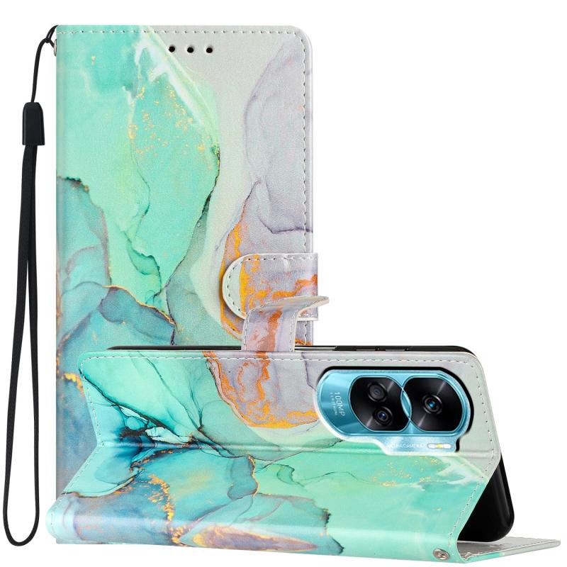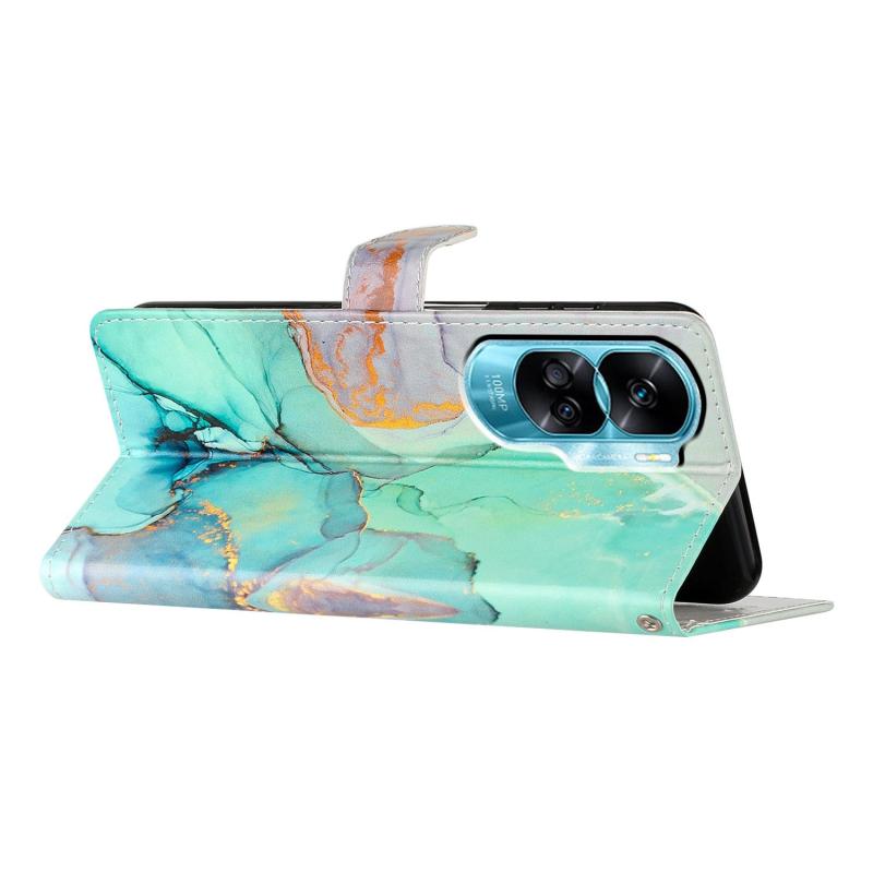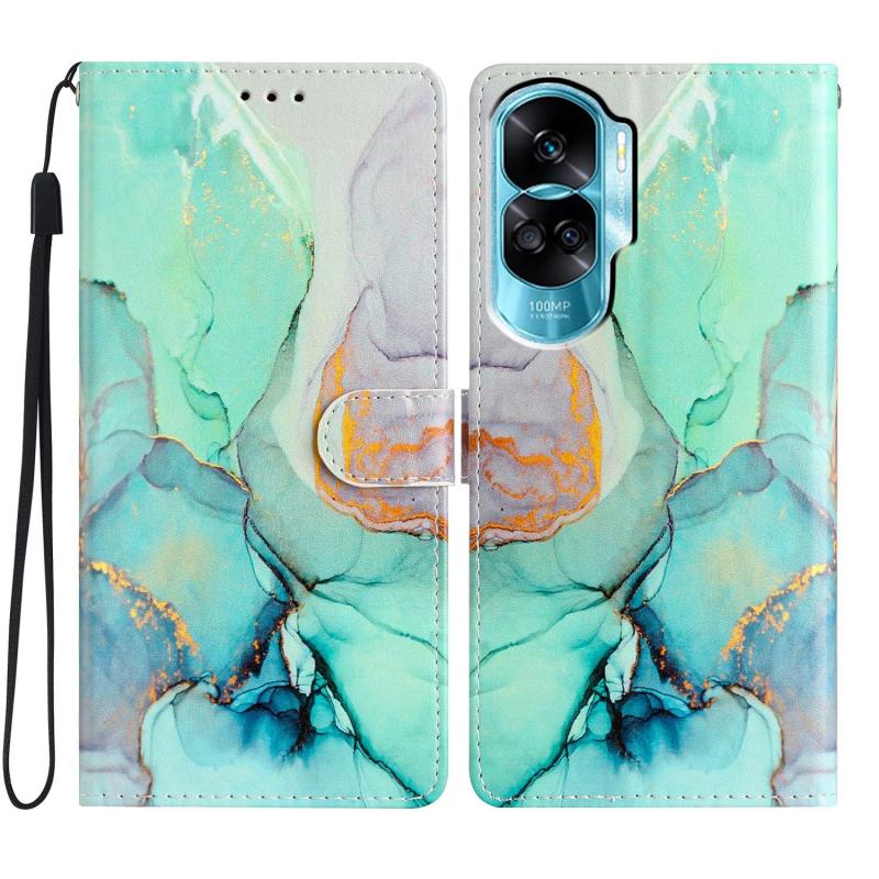 Θήκη τηλεφώνου από δέρμα με έγχρωμο σχέδιο για Honor 90 Lite (Μπλε Πεταλούδα)