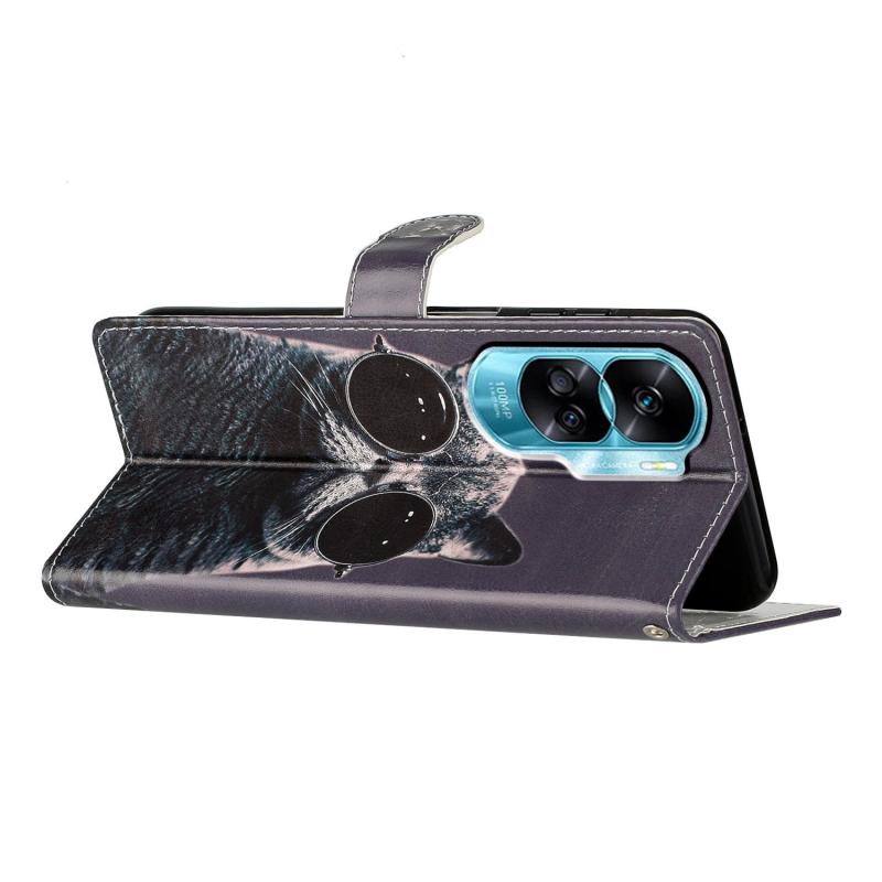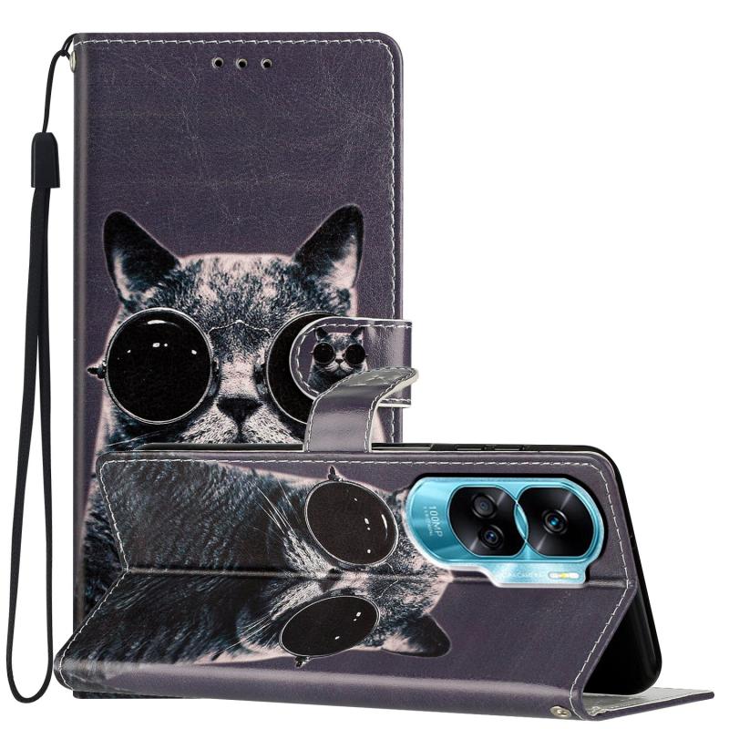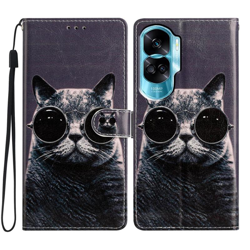 Θήκη τηλεφώνου από δέρμα με σχέδιο και χρώματα για Honor 90 Lite (Γάτα με γυαλιά ηλίου)