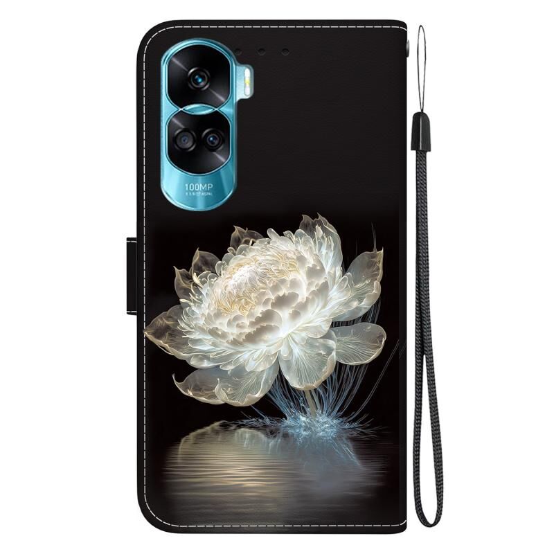 Θήκη τηλεφώνου από δέρμα με πολύχρωμη σχεδίαση κρυστάλλινης υφής για Honor 90 Lite (Κρυστάλλινη Παιώνια)