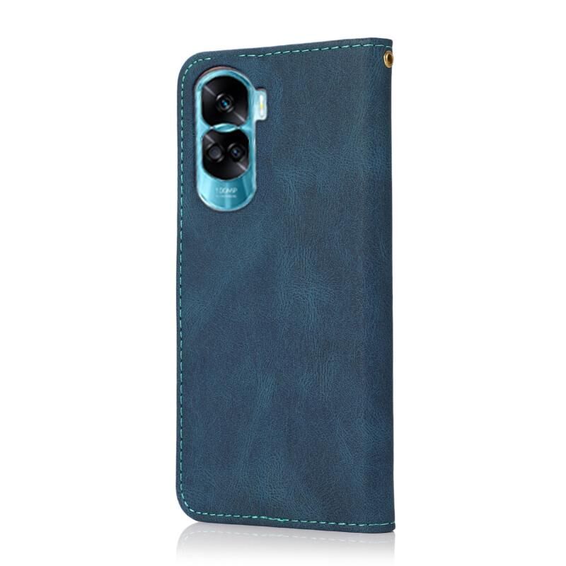 For Honor 90 Lite Dual-color Stitching Leather Phone Case(Blue Green)