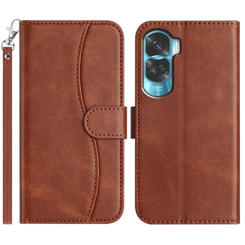 For Honor 90 Lite Dual-Folded S-shape Leather Phone Case(Coffee)