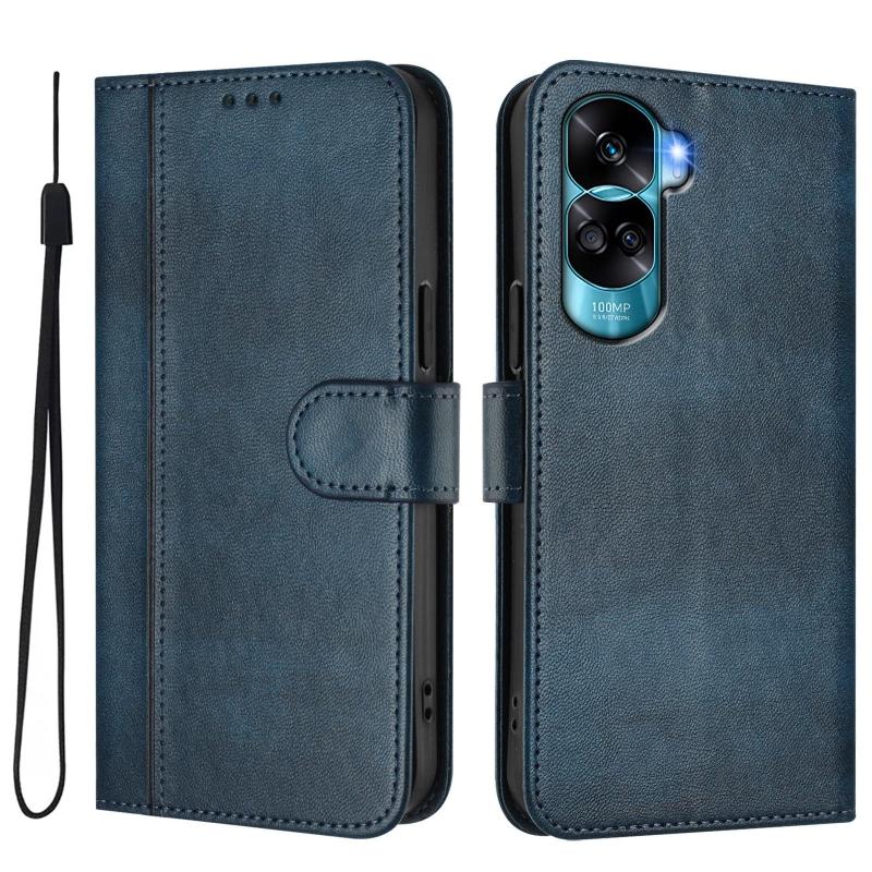 For Honor 90 Lite / Honor X50i Line Splicing Buckle Retro Leather Phone Case(Dark Blue)