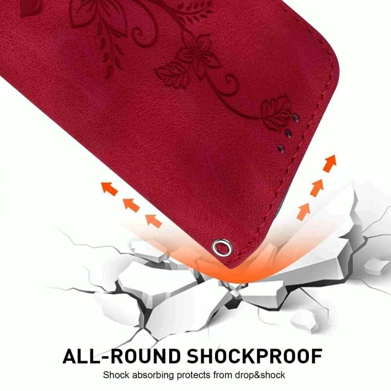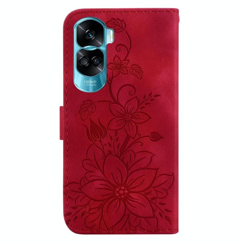 Για Honor 90 Lite Lily ανάγλυφη δερμάτινη θήκη τηλεφώνου (κόκκινο)