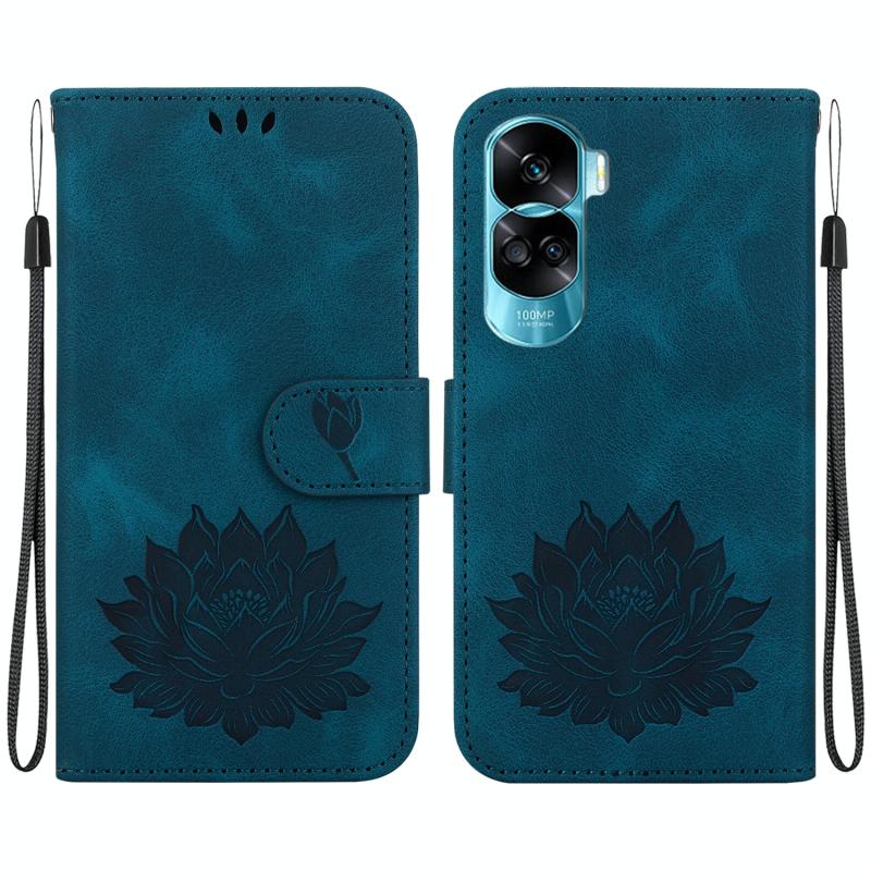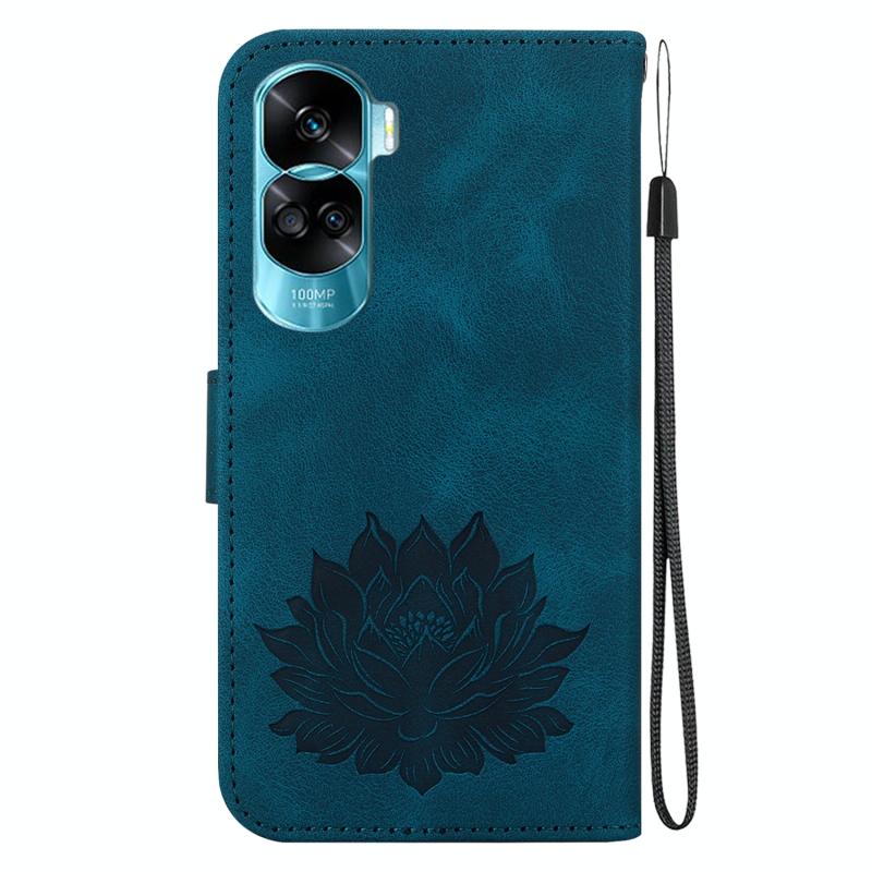 For Honor 90 Lite Lotus Embossed Leather Phone Case(Dark Blue)
