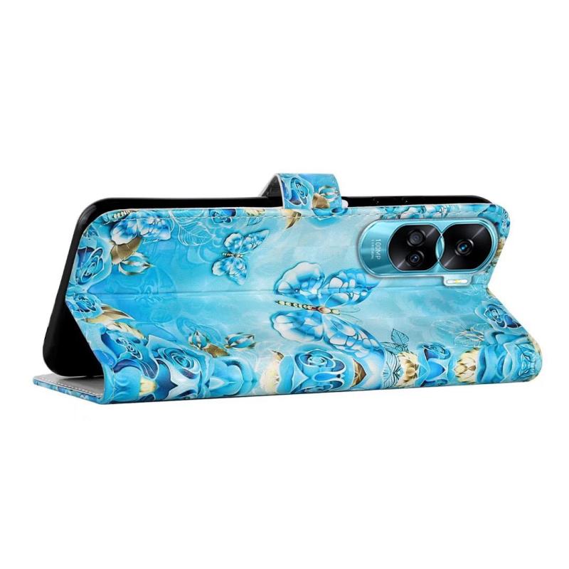 For Honor 90 Lite Oil Embossed 3D Drawing Leather Phone Case(Blue Butterflies)