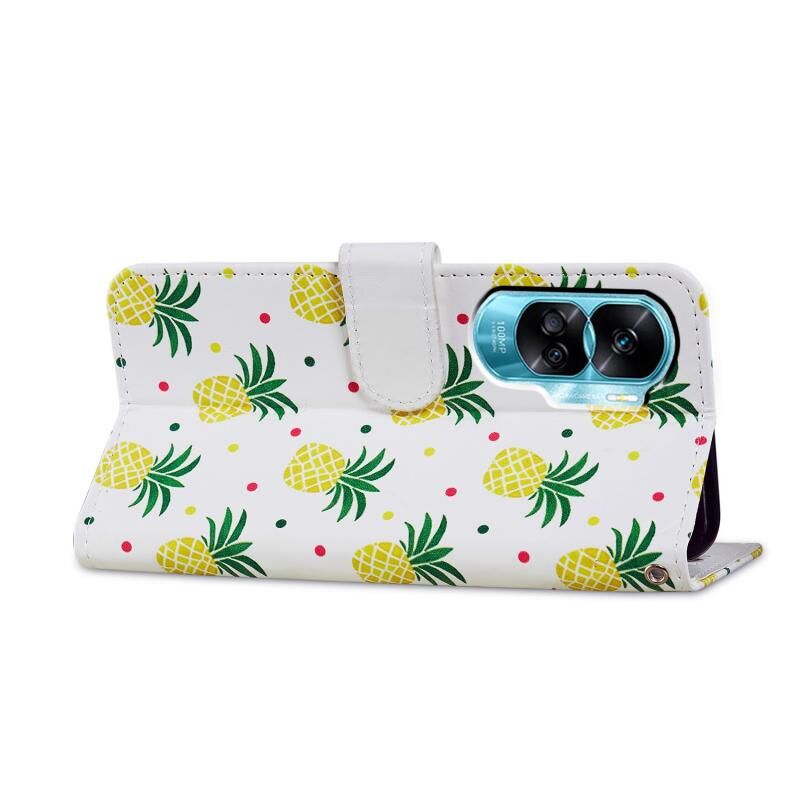 Θήκη τηλεφώνου δερμάτινη, οριζόντια αναδιπλούμενη, με σχέδιο (Pineapple) για Honor 90 Lite.